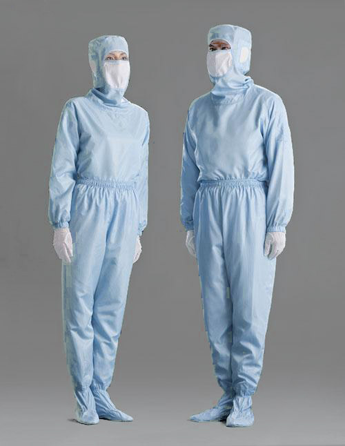 款式说明:套头式分体服(帽连衣、裤连脚套)。适用于C、D级洁净区。可选配无尘手套、洁净鞋、洁净衣袋。